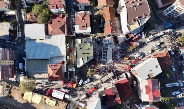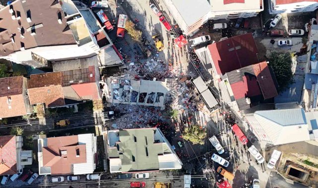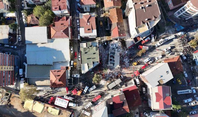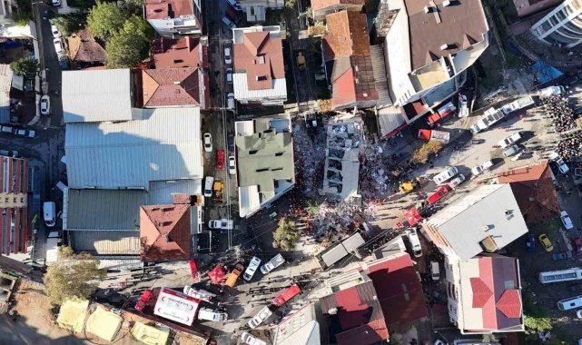 Gebze'de çöken bina havadan görüntülendi