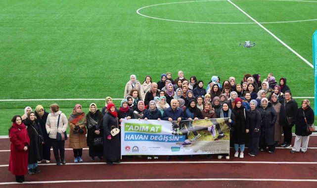 Gebze Belediyesi tarafından "Adım At, Havan Değişsin" mottosuyla düzenlenen etkinlikte bir araya gelen kadınlar, Pelitli Stadyumu'nda spor yaptı.