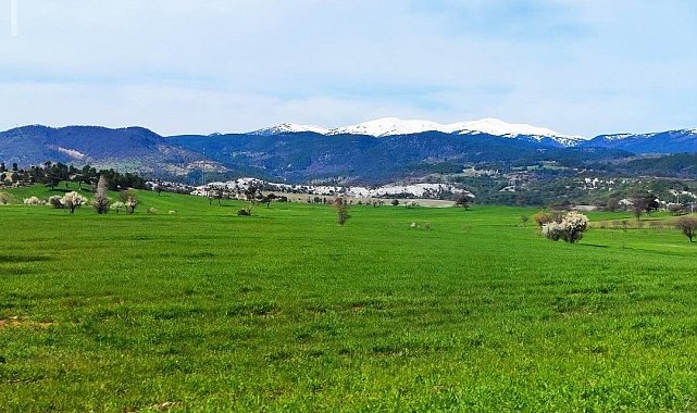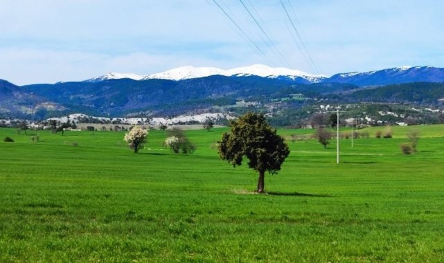Kütahya'nın Gediz ilçesinde baharın gelişiyle birlikte doğa adeta uyanışa geçti. Akdağ eteklerinden Murat Dağı yaylalarına kadar uzanan geniş coğrafya, kışın ağırlığını üzerinden atarak yeşilin, morun ve pembenin her tonunu içeren eşsiz bir renk cümbüşüne büründü. Adeta bir tablodan fırlamış gibi görünen bu eşsiz manzara, görenleri kendisine hayran bırakıyor.