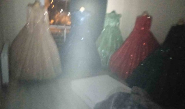 Gelinlikçide çıkan yangında yüzlerce gelinlik yanarak kül oldu