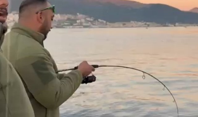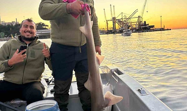 Bursa'nın Gemlik ilçesi açıklarında balık tutan balıkçıların oltasına yaklaşık 140 santimetre uzunluğunda bir köpek balığı takıldı.Gemlik Körfezi'nde denize açılan balıkçılar, oltalarına takılan canlının köpek balığı olduğunu fark etti. Kısa süreli şaşkınlık yaşayan balıkçılar, dikkatli bir şekilde köpek balığını tekneye almayı başardı.Balıkçılar, köpek balığını görüntüledikten bir süre sonra yeniden denize bıraktı. O anlar cep telefonu kamerasıyla saniye saniye kaydedilirken, görüntüler sosyal medyada kısa sürede ilgi gördü.Yaklaşık 140 santimetre uzunluğundaki köpek balığının Marmara Denizi'nde nadir rastlanan bir tür olduğu belirtildi.