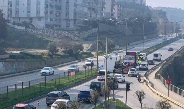 Bursa'nın Gemlik ilçesinde, seyir halindeki tırın üzerindeki makine savrularak yola devrildi. Kaza nedeniyle Gemlik-Bursa yolunun iki şeridi kapandı.