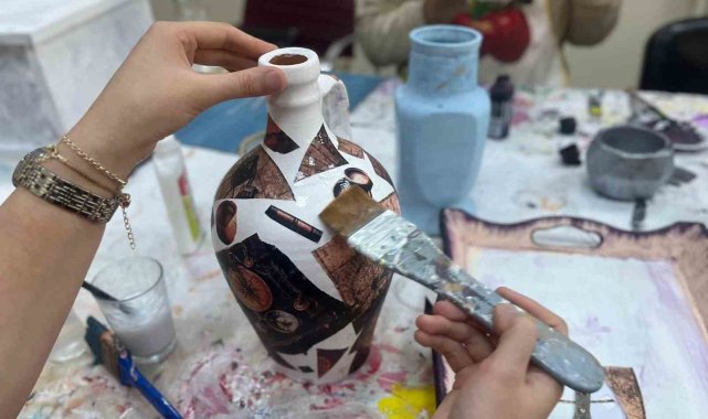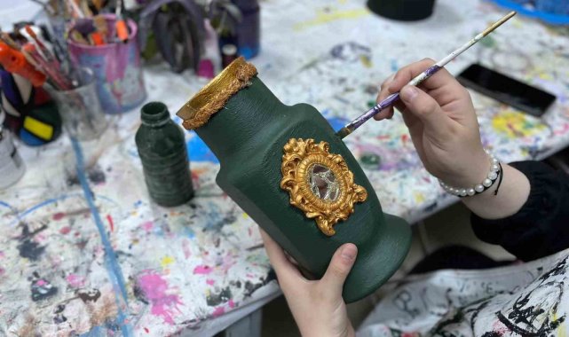 Muş'ta 'Güzel Sanat Atölyesi' kapsamında açılan geri dönüşüm kursuna katılarak atık malzemelere hayat veren gençler, hem güzel vakit geçiriyor hem de sanat öğreniyor.