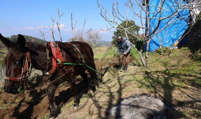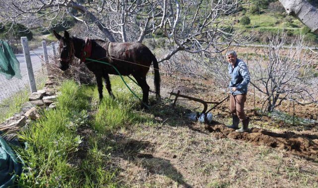 Aydın'da köylerde genç kalmayınca tarla ve bahçe işleri yaşlılara kaldı. Köyün en gencinin 50 yaşında olduğunu ifade eden 66 yaşındaki üreticilerden Musa Küçük, geleneksel yöntemle tarlasını işliyor.Aydın'da köyden kente göçlerin artması, gençlerin evlenmemesi veya evlenenlerin de az çocuk yapması gibi çeşitli sebepler nedeniyle kırsal kesimlerde nüfus ile birlikte çiftçi sayısı da gün geçtikçe azalmaya başladı. İl genelinde ziraat odalarına kayıtlı yaklaşık 130 bin çiftçi bulunurken, gençlerin tarımla uğraşmaktan kaçınması ise dikkat çekiyor. Gençlerin tarımdan uzaklaşması ile birlikte Aydın genelindeki çiftçilerin yaş ortalaması da her geçen gün yükselmeye devam ediyor. Çiftçi yaşının 60'a yükseldiği Aydın'ın köylerinde tarla ve bahçe işleri ile yaşlılar ilgileniyor.Koçarlı ilçesine bağlı Satılar Mahallesi'nde traktörün giremediği arazilerde geleneksel yöntemlerle tarla ve bahçelerini süren üreticiler, köyde gençlerin kalmaması sebebiyle 'İş başa düştü' diyerek topraklarını işlemeye çalışıyor."Köyün en gençleri biziz"Katırla toprakları işleyen 66 yaşındaki Musa Küçük, köyün en gencinin 50 yaşlarında olduğunu ifade ederek, "İncirlerin, asmaların diplerini işliyoruz. Onları sürüyoruz. Bizim buralarda traktör zaten işleyemiyor. Çapa makinesi işliyor ama o da bunun yaptığı işi yapamıyor. Mecburen yine hayvanla çalışıyoruz. Bahar mevsimi geldiği zaman mart ayında başlarız bu toprakları işlemeye, hazirana kadar devam eder. Köylerimizde maalesef genç kalmadı. Köyün en gençleri biziz. Köyün en gençleri 50 yaş üzeri. Haliyle bizim başımıza kalıyor işler. Gençleri buraya çekmemiz için köylere destek verilmesi lazım. Böyle giderse bizden sonra bu toprakları işleyecek insan kalmayacak. Çoluk çocuk yetişmeyecek. Benim 3 evladım var, üçü de dışarıda" dedi.Artık yetişen gencin kalmadığını ve kendilerinden sonra arazilerinin akıbetinin ne olacağını bilmediklerini ifade eden 62 yaşındaki Tahir Çoban ise, "Genç olsa da bu işi yapmıyorlar artık. Hepsi dışarıda çalışıyor. Şehre gittiler. Köyde genç bulamazsın yani. En genç bizler varız. Bizden sonra bu arazilerin ne olacağını bilmiyoruz" şeklinde konuştu.