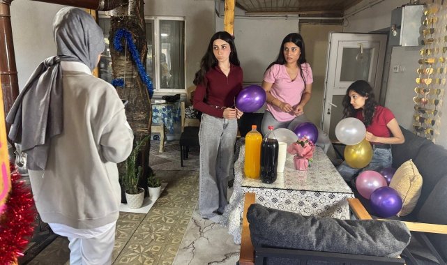 Erzincan'da gönüllü gençler, down sendromlu kardeşler Sümeyra ve Ahmet Demir için sürpriz bir doğum günü partisi düzenledi. Kardeşlerin mutluluğu gözlerinden okunurken, Sümeyra'nın umreye gitme hayali etkinliğe anlam kattı.Üniversite öğrencilerinin de yer aldığı gönüllü ekip, kardeşler için özel bir konsept hazırlayarak evi süsledi, doğum günü pastası ve hediyelerle unutulmaz bir kutlama gerçekleştirdi.Hazırlıkların ardından sürprizle karşılaşan Sümeyra ve Ahmet Demir büyük bir mutluluk yaşadı. Doğum günü pastasındaki mumları üfleyen kardeşler, duygusal anlar yaşarken, Sümeyra yaptığı konuşmada, "Doğum günümü kutlayan bütün abilerime ve ablalarıma çok teşekkür ediyorum. Allah hepsinden razı olsun. Ben de ileride Kur'an hocası olmak istiyorum, imam hatipte okumayı çok arzuluyorum," dedi.Etkinliği organize eden gönüllülerden Ayşe Seçkin Kevser, "Sümeyra'nın doğum gününü öğrenir öğrenmez harekete geçtik. Kabe'ye gitme hayalini duyunca, hediyelerimizi bu temada hazırladık. İnşallah bir gün birlikte orada olmayı da nasip eder," ifadelerini kullandı.Kardeşlerin babası Sebahattin Demir ise, "Canım kızım Sümeyra'nın doğum gününü kutlayan gençlerden Allah razı olsun. Kızımın en büyük isteği umreye gitmek, inşallah bu dileği de gerçekleşir," dedi.Etkinliğe katılan gönüllü öğrenciler, Sümeyra ve Ahmet'in mutluluğuna ortak olurken, iki kardeşin yüzlerindeki tebessüm günün en anlamlı karesi oldu.