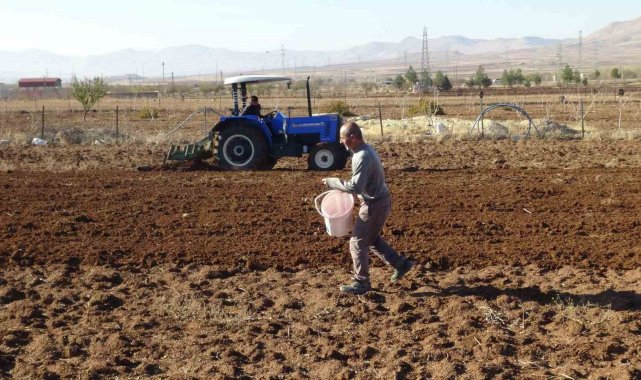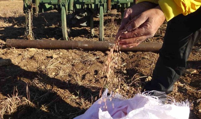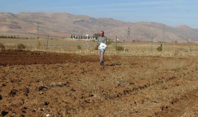 Batman'ın Gercüş ilçesinde çiftçiler, kış öncesinde buğday, arpa ve mercimek üretimi için tohumları toprağa ekiyor.