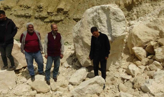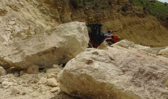 Batman'ın Gercüş ilçesine bağlı Aydınlı köyü Mağaralar mezrasında, dün gece yağışlar nedeniyle yamaçtan kopan dev kaya parçaları yolu ulaşıma kapattı.