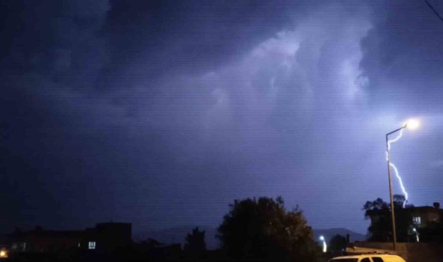 Gercüş'te şimşekler geceyi aydınlattı