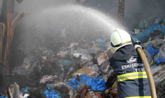 Eskişehir'de gece saatlerinde bir geri dönüşüm tesisinde çıkan yangında kamyon, ekskavatör ve tonlarca geri dönüşüm malzemesi kül olurken, yan taraftaki işletmeye sıçrayan alevlerin 10 milyon liralık hasara neden olduğu tahmin ediliyor.