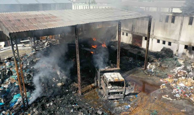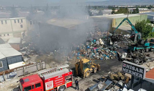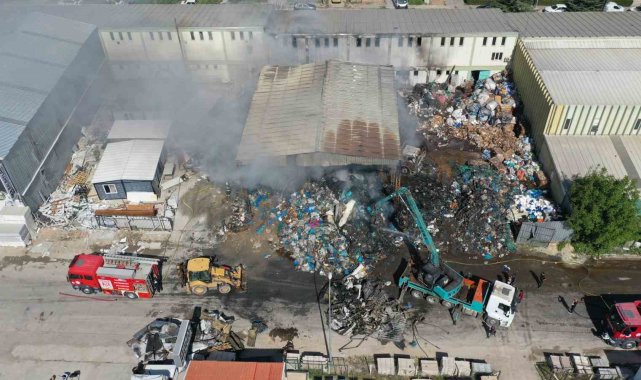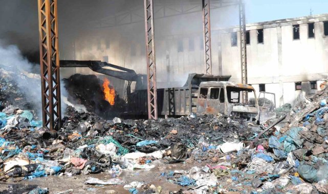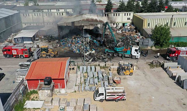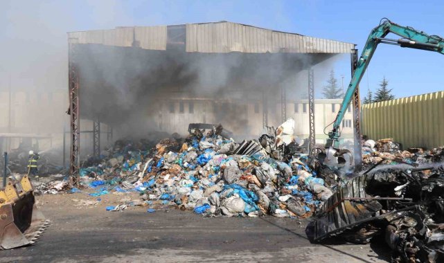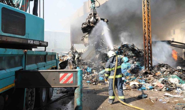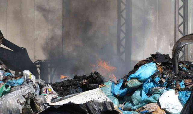Geri dönüşüm tesisinde çıkan yangın 8'inci saatin sonunda kontrol altına alındı