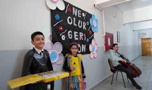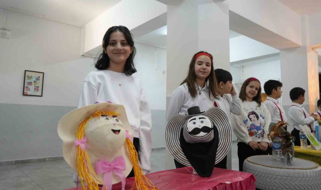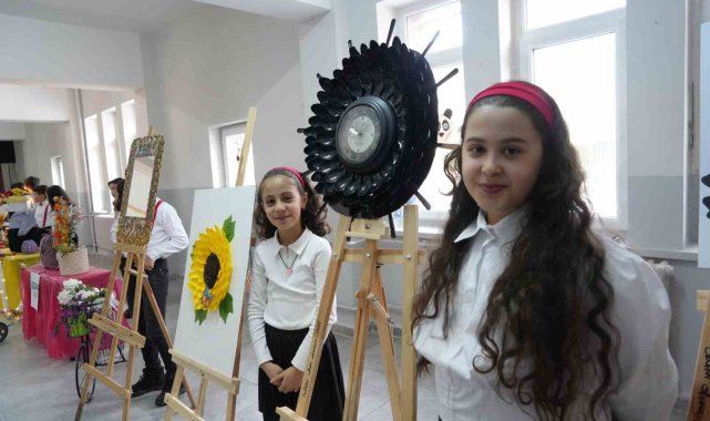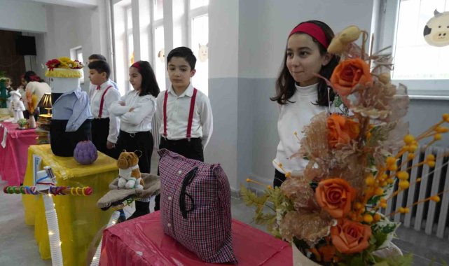 Erzurum'da ilkokul 4'üncü sınıf öğrencileri, çevrelerinde kullanılmayan atıkları değerlendirerek birbirinden farklı eserler ortaya çıkardılar.