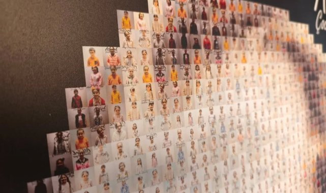 Aydın'ın Germencik ilçesinde 23 Nisan kapsamında 500'ü aşkın çocuğun 3 bin 600 fotoğraf karesi bir araya getirilerek Atatürk portresi oluşturuldu.