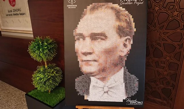 Aydın'ın Germencik ilçesinde 23 Nisan kapsamında 500'ü aşkın çocuğun 3 bin 600 fotoğraf karesi bir araya getirilerek Atatürk portresi oluşturuldu.Germencik Belediyesi koordinesinde 23 Nisan'da anlamlı bir projeye imza atıldı. Hayata geçirilen "Atatürk Çocukları" projesi kapsamında, 23 Nisan Ulusal Egemenlik ve Çocuk Bayramı'na özel olarak dikkat çeken bir çalışma gerçekleştirildi. Tiyatro kursu eğitmeni Sermin Atik Kaya'nın öncülüğünde yürütülen projede, ilçede yaşayan 500'ün üzerinde çocuğun fotoğrafları bir araya getirildi. Toplam 3 bin 600 kareden oluşan çalışma sonucunda, Ulu Önder Mustafa Kemal Atatürk'ün portresi oluşturuldu. Ortaya çıkan eser hem görselliği hem de taşıdığı anlamla büyük beğeni topladı. Projede yer alan çocukların fotoğraflarını portre içerisinde gören aileler ise duygusal anlar yaşadı.Projeyi 23 Nisan'a yetiştirmenin gururunu yaşadıklarını belirten Germencik Belediye Başkanı Burak Zencirci; "Atatürk Çocukları projemizi tamamlayarak 23 Nisan Ulusal Egemenlik ve Çocuk Bayramı'na yetiştirmenin gururunu yaşıyoruz. Geleceğimizin umudu evlatlarımızın fotoğraflarını, Ulu Önderimiz Mustafa Kemal Atatürk'ün büyük portresinde bir araya getirerek anlamlı ve unutulmayacak bir eser oluşturduk. Her birimiz onun parçası olmaktan vazgeçmeyeceğiz" dedi.