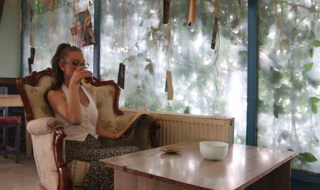Sivas'ta binaların arasında sarmaşıklarla çevrelenmiş kafe görenlerin ilgisini çekiyor. Kafeye gelen müşteriler fotoğraf çekilerek keyifli vakit geçiriyor.Sivas'ta yaklaşık 10 yıldır hizmet veren ve dış cephesi tamamen sarmaşıklarla kaplı bir kafe, sade mimarisi ve kendine özgü doğal dokusuyla dikkat çekiyor."Kafenin dışarıdan çok dikkat çekici bir yapısı var"Sarmaşıklarla kaplı olmasından dolayı kafenin dikkat çekici bir yapısının olduğunu belirten müşteri Zeynep Kaçer, "Nostaljik ve fotoğraf çekimine uygun, sessiz sakin, kafa dinleyeceğimiz ve oturup kitap okuyabileceğimiz bir kafe. Bakıldığında çok dikkat çekici bir yapısı olduğu için dışarıdan çok güzel gözüküyor. Benim çok hoşuma gitti. Sarmaşıklarla kaplı olması özelliğiyle aslında çok dikkat çekiyor. Biz de arkadaşlarımızla buraya gelip fotoğraflar çektik ve sohbet ettik" diye konuştu."Burada kendimi doğanın içinde gibi hissettim"Kafede kendisini doğanın içerisinde gibi hissettiğini ifade eden müşteri Buket Yanardağ, "Buraya geldik kitap okuduk. Kafenin her yerinde kitaplar var bu durum çok hoşuma gitti. Burada fotoğraflar çekildik. Sarmaşıklarla kaplı ve burada kendimi doğanın içinde gibi hissettim. Kitap okudum, arkadaşlarımla beraber güzel zaman geçirerek sohbet ettik, bol bol da fotoğraf çekildik" dedi.