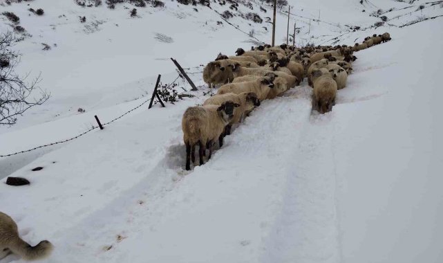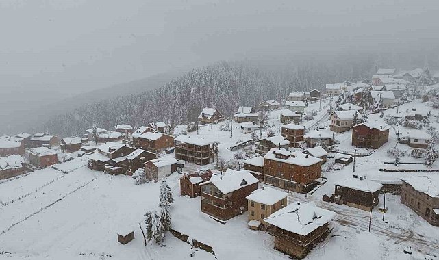 Giresun yaylalarında yağan karla kartpostallık görüntüler oluştu
