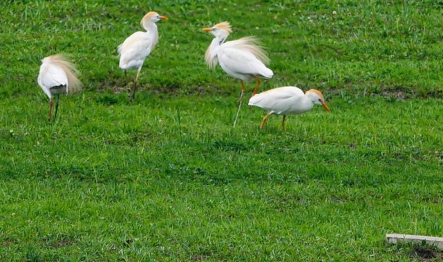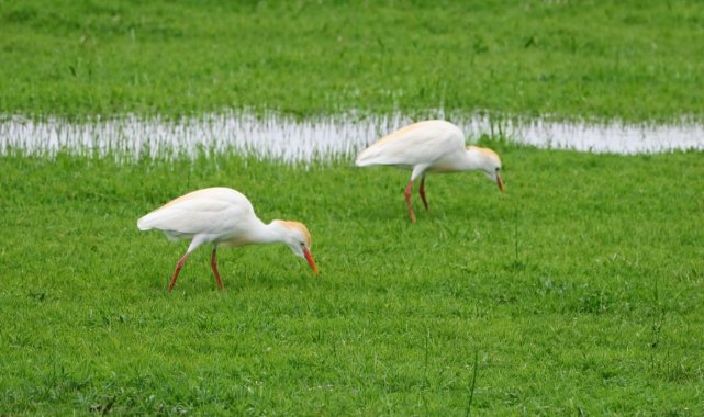 MUŞ (İHA) – Baharın gelmesiyle birlikte yeşillenen Muş Ovası'na sürü halinde göçmen kuşlar gelmeye başladı.Muş Ovası, baharın gelmesiyle birlikte yeşile bürünen görüntüsü ve misafir ettiği göçmen kuşlarla dikkat çekiyor. Ovada toplu halde beslenen kuşlar, zaman zaman kısa mesafeli uçuşlar yapıyor. Özellikle sulak alanların çevresinde yoğunlaştığı gözlenen kuş sürüleri, geniş alanlara yayılarak güzel görüntüler oluşturuyor. Yeşil zemin üzerinde toplu halde hareket eden kuşlar, ovada farklı bir görüntü oluşturdu.Görüntülenen kuşların halk arasında "inek kuşu" olarak bilinen sığır balıkçılı (Bubulcus ibis) olduğu belirtildi. Açık alanlarda ve sulak bölgelerde yaşayan bu türün, böceklerle beslenerek tarım alanlarına katkı sağladığı ifade edildi. Sığır balıkçıllarının genellikle büyükbaş hayvanların çevresinde bulunduğu, hayvanların hareketiyle ortaya çıkan böcekleri avladığı biliniyor.