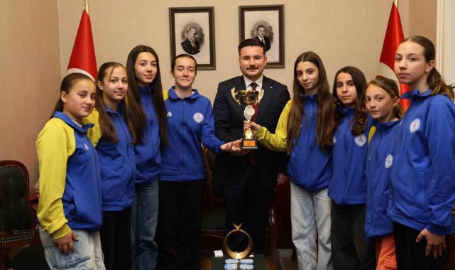 Gökçeada'nın şampiyon kızları kaymakamlık makamında ağırlandı