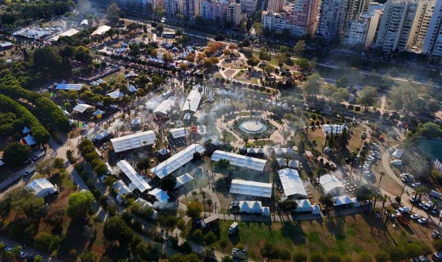 Adana'da bu sene 9. kez düzenlenen 'Uluslararası Adana Lezzet Festivali'nde kebap stantları en yoğun ilgiyi görürken, son günde kebapların dumanı adeta gökyüzünü kaplamış durumda. Gökyüzünü kaplayan dumanlar ve kebapçıların önünde oluşan metrelerce kuyruk dron ile görüntülendi.Valiliğin ev sahipliğinde belediyeler ile odalar ve sivil toplum kuruluşlarının katkılarıyla düzenlenen 9. Uluslararası Adana Lezzet Festivali, Merkez Park'ta son gününde büyük bir coşkuyla devam ediyor.Kebapçılarda kuyrukFestival alanına Türkiye'nin dört bir yanından ve yurt dışından gelenler, Adana'nın yöresel lezzetlerini tadarken, çeşitli etkinliklerde de eğlenceli vakit geçirmeye devam ediyor. Festivalde en yoğun ilgi ise her sene olduğu gibi Adana kebaba gösterildi.Gökyüzü dumanla kaplandıFestivale katılan binlerce vatandaş, kebapçıların önünde uzun kuyruklar oluşturdu. Ayrıca Adana kebapların pişirildiği mangallardan çıkan dumanlar ise gökyüzünü kapladı. Gökyüzünü kaplayan dumanlar ve kebapçıların önünde oluşan kuyruk, dron ile havadan görüntülendi.Festival, hem esnafı hem de vatandaşları mutlu etti."Bu festivalin dünyada eşi, benzeri yok"İhlas Haber Ajansı'na konuşan kebapçı Yaşar Aydın, "Gerçekten muazzam bir kalabalık var. İzdiham var gelenler mutlu, bizler mutluyuz. Adana Lezzet Festivali bir başka. Bu festivalin dünyada eşi, benzeri yok. Eminim ki ileride Rio Karnavalı'nı geçeceğiz. İnsanlar kebaba, şırdana, tatlıya ve birçok lezzete geliyor. Festivalde izdiham var, yıl yıl sayı artıyor ve daha da artacak" ifadelerini kullandı."Uçaklar bu dumandan dolayı iniş yapamazdı"Kebap sırasında insanların dakikalarca beklediğini ve sıranın her geçen saat arttığına dikkat çeken Aydın, "Merkez Park'tayız ve kebap sırası her geçen saat uzuyor. Manzara, hizmet, lezzet ve Adana'nın sıcakkanlılığı var. Adana demek insanlığın başkentidir. Festivale gelenler dumana gelsin. Dumanı takip eden festivali bulur. Aslında havalimanının buradan taşınması iyi oldu, yoksa uçaklar bu dumandan dolayı iniş yapamazdı" diye konuştu."30 dakika sıra bekledik"Mersin'den festival için gelen Danyal Alp, "Festival çok güzel. Tarsus'ta haberini duyup geldik. Buraya gelip kebap yedik, aşırı bir izdiham var. Çok sıra bekledik, gelenler buna göre bilinçlenip gelsin. Biz 30 dakika kebap sırasında bekledik ama değdi" dedi.İstanbul'dan gelen Ülfet Kurtuluş ise, "Böyle bir festivale arkadaşımız davet etti ve geldik. Kebap yemek için bekliyoruz, siparişi verdik bekliyoruz. Adana deyince akla kebap geliyor, herkes bu festivale gelmeli" şeklinde konuştu.Ankara'dan geldiğini anlatan Cevriye Şahin ise festivale herkesin gelip Adana lezzetlerini tatması gerektiğini söyledi.