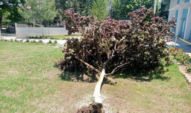 Adıyaman'ın Gölbaşı ilçesinde etkili olan şiddetli rüzgar, bir ağacı kökünden söktü. Meteoroloji Genel Müdürlüğü'nün fırtına uyarısında bulunduğu bölgede vatandaşlar tedirgin oldu.