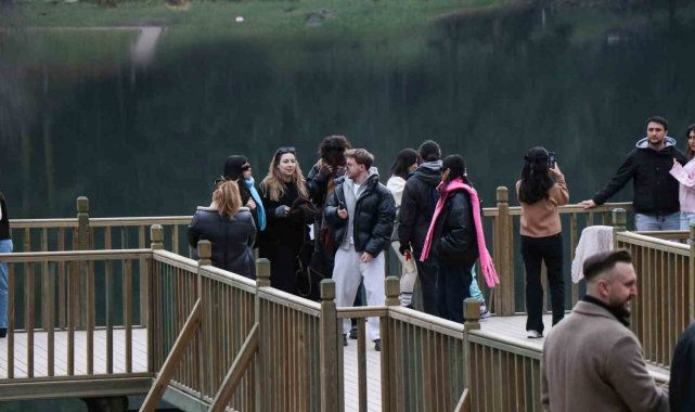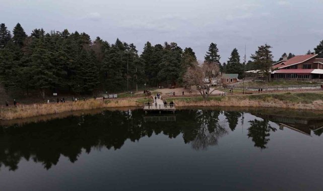 Bolu'nun doğa harikası Gölcük Tabiat Parkı, hafta sonunda ziyaretçi akınına uğradı. Gölün ortasında yer alan simge ev, gölün durgun suyunda yansımasıyla birlikte kartpostallık manzaralar oluşturdu.Bolu'nun doğa harikalarından Gölcük Tabiat Parkı, hafta sonu ziyaretçilerin akınına uğradı. Şehrin gürültüsünden uzaklaşmak isteyen vatandaşlar, göl kenarında yürüyüş yaparak ve doğanın keyfini çıkararak huzurlu bir gün geçirdi. Gölcük'ün simgesi konuk evinin ve dağların gölün yansımasıyla birleşince ziyaretçilere görsel bir şölen sundu.Şehir dışından ilk kez gelen Neriman Kılıç, "Çok güzel zaten merak ediyorduk. Geldik. Çok soğuk bekliyorduk ama gayet güzel" dedi.Mersin'den ailesiyle birlikte gelen Erol Uğur, "Doğası harika güzel, manzarası da güzel" diye konuştu.