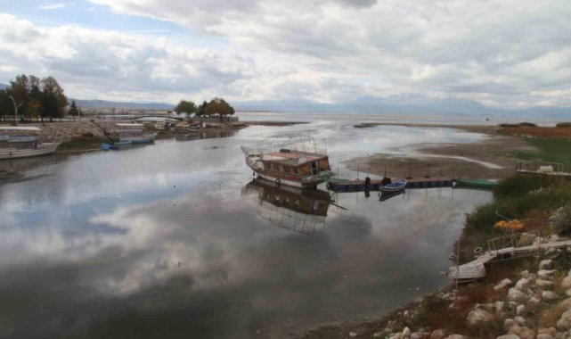 Konya'nın Beyşehir ilçesinde göl suları çekildi, gezinti yatları ve balıkçı tekneleri kıyılarda karaya oturdu, tarihi Taşköprünün eşik kotundaki tabanı da yıllar sonra yeniden ortaya çıkarak görünür oldu.