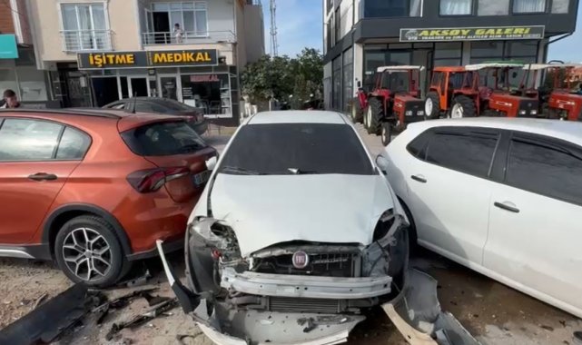 Balıkesir'in Gönen ilçesinde kontrolden çıkan tır, park halindeki 8 araca çarptı. Kaza maddi hasarla atlatıldı.