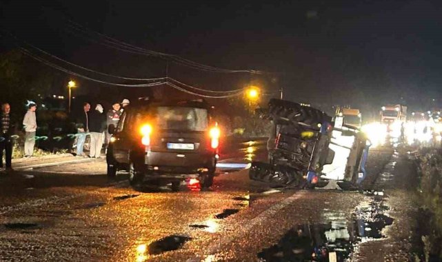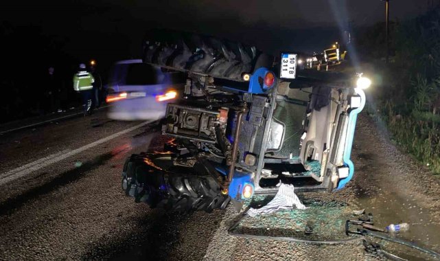 Gönen'de otomobil traktöre çarptı: 2 yaralı