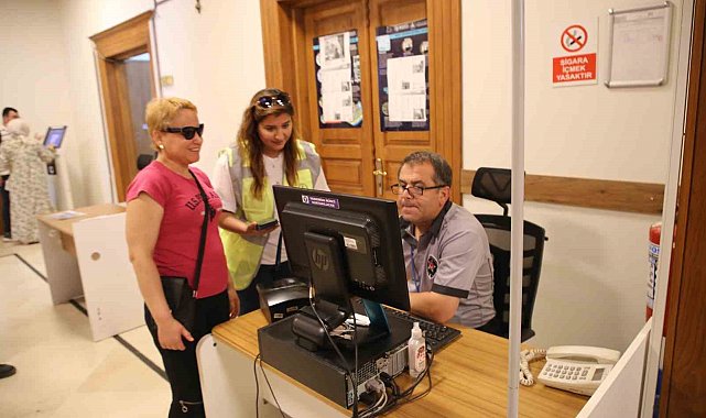 Hatay'da yaşayan görme engelli Süreyya Söylemez'i kimlik yenilemeye Hatay Büyükşehir Belediyesi ekipleri götürdü.