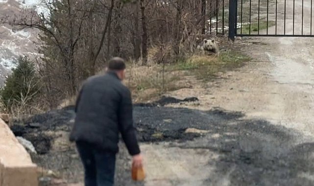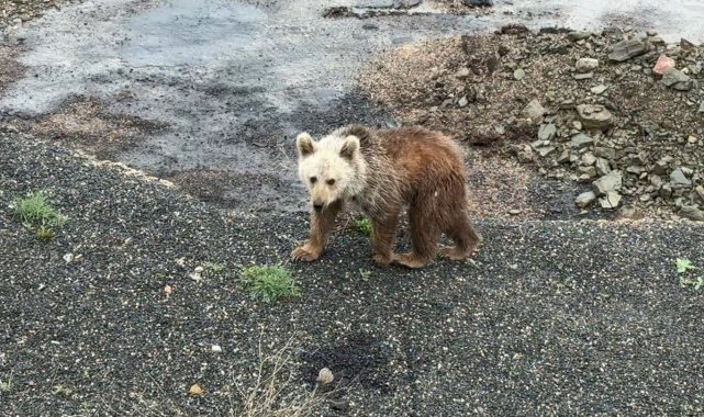 Gümüşhane'de aç kalan yavru ayıyı elleriyle beslediler