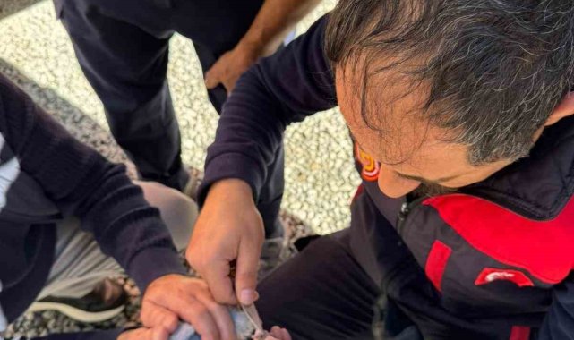 Gümüşhane'de itfaiye ekipleri ayakları ipe dolanan güvercin için seferber oldu