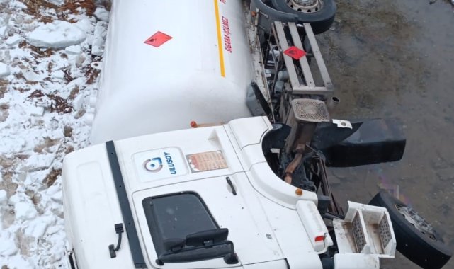 Gümüşhane'de buzlanan yolda kontrolden çıkan LPG yüklü tanker dere yatağına devrildi.Gümüşhane'nin Kelkit ilçesinde meydana gelen kazada, 34 DR 4897 plakalı LPG yüklü tanker, yolların kaygan ve buzlu olması nedeniyle sürücüsünün direksiyon hâkimiyetini kaybetmesi sonucu yolun alt kısmındaki dere yatağına devrildi.Aracı kullanan Şenol K. (51) kazada yaralandı. İhbar üzerine bölgeye sağlık ve jandarma ekipleri sevk edildi. Yaralı sürücüye ilk müdahale 112 Acil Sağlık ekiplerince olay yerinde yapıldıktan sonra Kelkit Devlet Hastanesine kaldırıldı. Şenol K.'nın hayati tehlikesinin bulunmadığı öğrenildi.Devrilen LPG yüklü tankerde sızıntı kontrolü yapıldıÖte yandan olay yerine sevk edilen AFAD ekipleri, özel ekipmanlarla LPG yüklü tankerin çevresinde sızıntı tespiti çalışması gerçekleştirdi. Yapılan kontrollerde herhangi bir sızıntı olmadığı belirlendi.Kazada araçta başka yolcu bulunmazken, olayla ilgili inceleme başlatıldı.