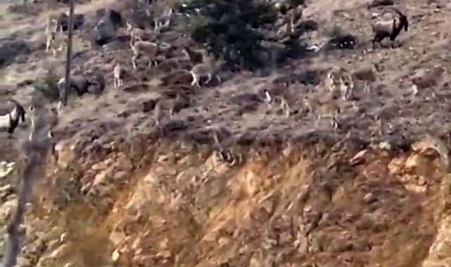 Gümüşhane'de yaban keçileri sürü halinde görüntülendi