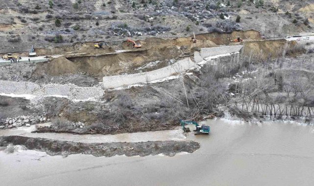 Gümüşhane-Erzincan karayolunda geçen bahar ayında meydana gelen ve yolun çökmesine neden olan heyelanın ardından Karayolları ekipleri bakım ve onarım çalışmalarını sürdürüyor.