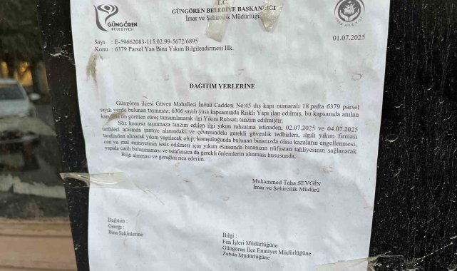 İstanbul Güngören'de kentsel dönüşüm kapsamında yıkım çalışması yapılan binanın bitişiğindeki binada 4 ve 5. katlarındaki banyo kısımlarının duvarları olmadığı fark edildi. Yıkım sırasında hasar alan bina da, risk nedeniyle boşaltıldı.