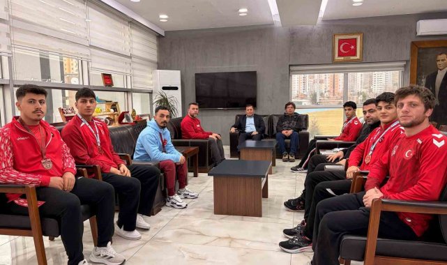 Güreş ve halter şampiyonlarından Kabakcı'ya ziyaret