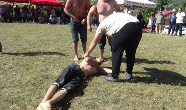Bolu'da geleneksel olarak düzenlenen Hacet Bayramı etkinliklerinde yapılan karakucak güreşlerinde bir güreşçinin yere serilmesiyle dirseğinin kırılması bir oldu. O anlar saniye saniye görüntülendi.