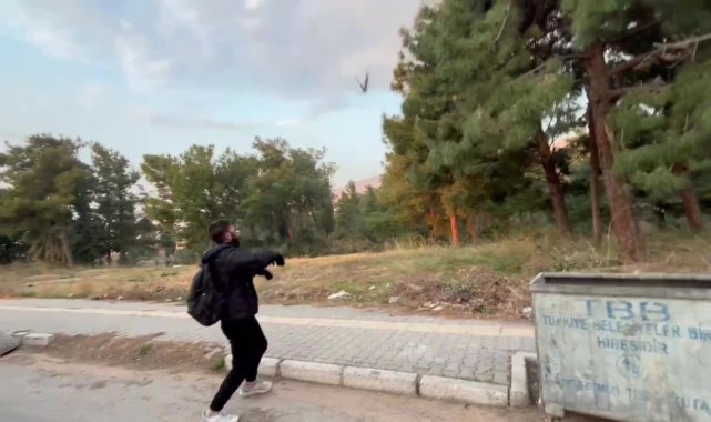 Güvercinlerini parçalayan atmacayı yakalayıp besledikten sonra doğaya saldı