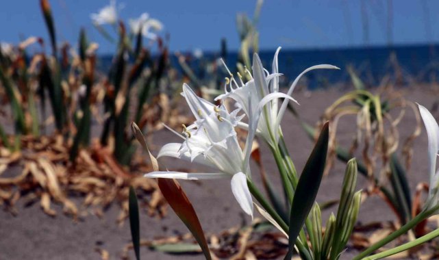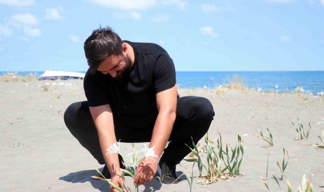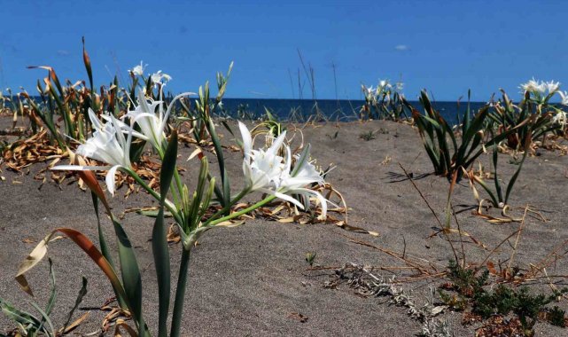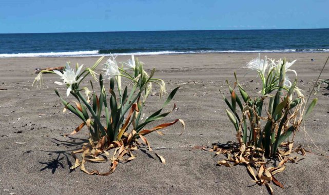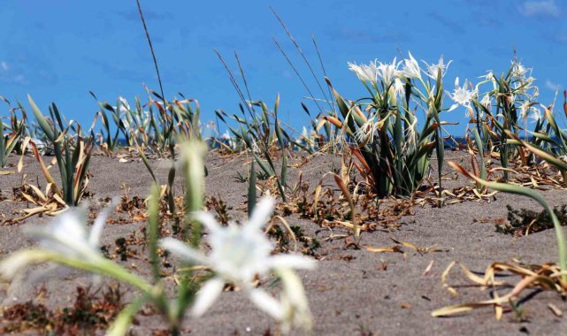 Sakarya'nın Kocaali ilçesi, nesli tükenme tehlikesi altında olan kum zambaklarına ev sahipliği yapıyor. Beyaz çiçekleriyle sahile adeta tablo gibi bir görüntü katan bu endemik bitkiyi koparmanın cezası ise 380 bin TL'ye kadar çıkıyor.