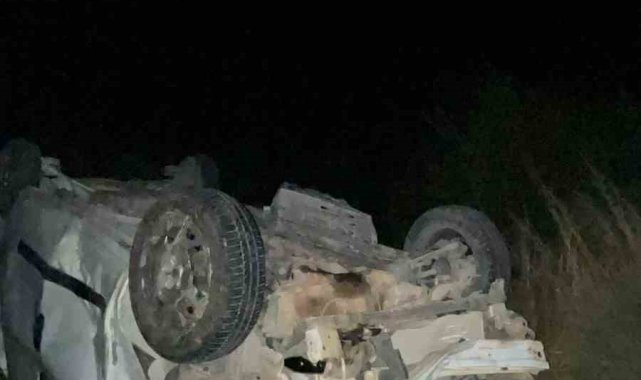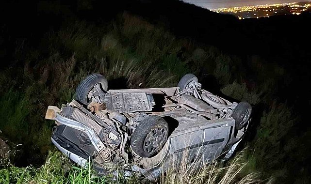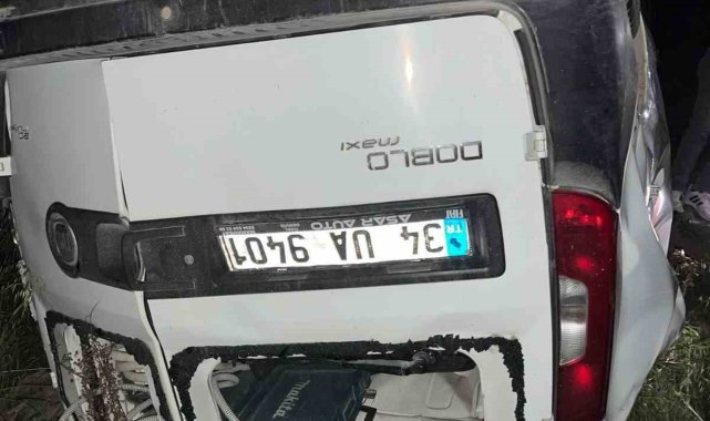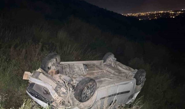 Hafif ticari araç, antik kent girişinde şarampole yuvarlandı: 2 yaralı