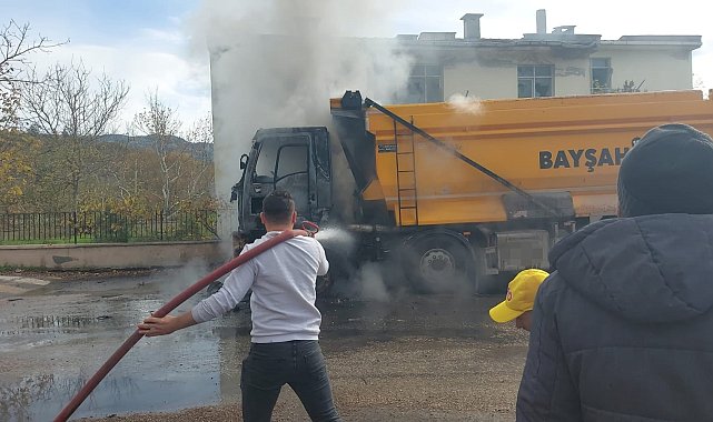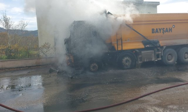 Bursa'da hareket halindeki hafriyat kamyonu alev topuna döndü. İtfaiye ekiplerinin müdahale ederek söndürdüğü kamyon, küle döndü.Olay, Bursa'nın Mustafakemalpaşa ilçesi Devecikonak Mahallesi'nde meydana geldi. Edinilen bilgiye göre, Taş Mektep yakınlarında hafriyat kamyonundan dumanlar çıktığı fark eden sürücü, araçtan inip canını kurtardı. Biranda alev topuna dönen kamyon, Orman İşletme Müdürlüğü'ne bağlı ekipler tarafından söndürüldü.Yangın sonrası kamyon kullanılmaz hale geldi.Olayla ilgili tahkikat sürüyor.