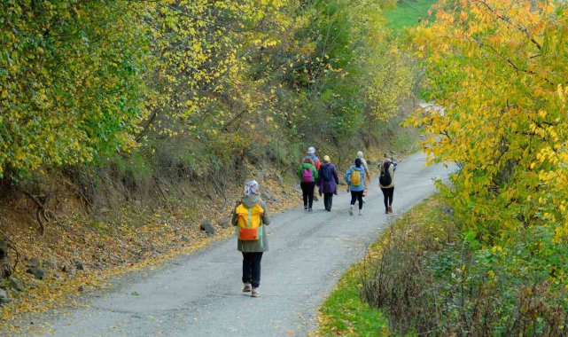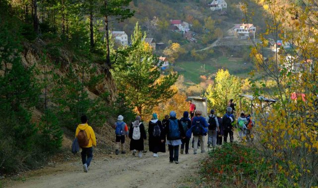 Gümüşhane'de 37 sporcu, kentin 'İsviçresi' olarak bilinen Yurt Köyü'nden ekmeğiyle dünyaca ünlü Araköy köyüne uzanan 14 kilometrelik parkurda sonbaharın eşsiz renkleri arasında unutulmaz bir doğa yürüyüşü gerçekleştirdi.