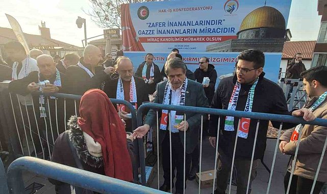 Hak İşçi Sendikaları Konfederasyonu (HAK-İŞ) Filistin ve Kudüs Komitesi Başkanı Hüseyin Tanrıverdi, "Filistinli kardeşlerimizin yaşadığı ekonomik ve insani sıkıntılarının acilen giderilmesini istiyoruz" dedi.HAK-İŞ tarafından Miraç Kandili dolayısıyla Hacı Bayram Veli Camii'nde ikindi namazı sonrası süt ve lokma dağıtıldı. Programda HAK-İŞ Filistin ve Kudüs Komitesi Başkanı Hüseyin Tanrıverdi açıklamada bulundu. İsrail ile Filistin arasında gerçekleşen ateşkes mutabakatını önemli bir adım olarak gördüklerini ifade eden Tanrıverdi, "Bütün dünyanın gözleri önünde siyonist İsrail'in yarım asırdan uzun bir süredir acımasızca gerçekleştirdiği soykırım ve katliamlarına maruz kalan Filistin ve Gazze'nin yiğit evlatlarını verdikleri asil mücadele ve elde ettikleri başarı dolayısıyla kutluyoruz. 1948 yılında kan ve işgal üzerine kurulan İsrail, o günden bu yana işgalini sürekli genişletmiştir. 7 Ekim 2023 tarihinden bu yana şiddetini artırarak Filistin'de, özellikle Gazze'de yüzyılın en ağır trajedisi ve insanlık tarihinin en acımasız katliamlarından biri yaşanmıştır. Siyonist İsrail, Gazze'yi bir açık hava hapishanesine dönüştürmüş, ciddi insan hakları ihlalleri yaparak soykırım gerçekleştirmiştir" dedi.Tarihi ve kültürel mirasların yok edildiği bir yıllık sürede Gazze Şeridi'ne 85 bin ton patlayıcı atıldığını hatırlatan Tanrıverdi, "HAK-İŞ olarak ateşkes anlaşmasının bütünüyle hayata geçirilmesini, izleyen süreçte kalıcı barış için çalışmalar yapılmasını, Orta Doğu'da kalıcı barış için iki devletli çözüm anlayışı ile başkenti Kudüs olan bağımsız ve coğrafi bütünlüğe sahip bir Filistin Devleti'nin kurulmasının sağlanmasını, Filistinli kardeşlerimizin yaşadığı ekonomik ve insani sıkıntılarının acilen giderilmesini, İsrail'e yönelik silah sevkiyatının derhal durdurulmasını ve Gazze'ye insani yardım erişiminin kesintisiz bir şekilde sağlanması için uluslararası toplumun harekete geçmesini, İsrail'in Gazze'deki insanlık dışı abluka, yasadışı yerleşim faaliyetlerine, Kudüs'ün tarihi ve hukuki statüsüne yönelik saldırılarından ve insanlığın tüm değerlerini yok sayan tutumundan vazgeçmesini, işgalci İsrail'in Filistinlilere karşı uygulanan zorla yerleşim, yer değiştirme ve yıkım çalışmalarını, İsrail güçlerinin Mescid-i Aksâ'ya karşı saldırılarını ve Kudüs şehrindeki tarihi yapıları tahrip etmesini şiddetle kınıyor ve durdurulmasını istiyoruz" şeklinde konuştu.