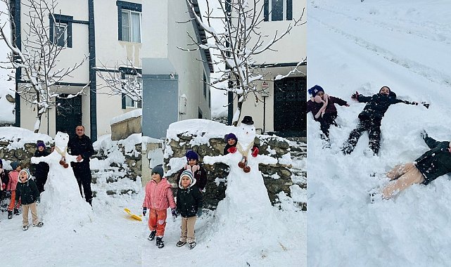 HAKKARİ (İHA) – Hakkari'de etkili olan kar yağışının ardından kardan adam yapan çocuklar günün keyfini çıkardı.Hakkari'de etkili olan yoğun kar yağışı hayatı olumsuz etkilerken, il genelinde 305 köy ve mezra yolu ulaşıma kapandı. Kapalı yolların yeniden ulaşıma açılması için İl Özel İdaresi ekiplerinin karla mücadele çalışmaları aralıksız sürüyor. Kar yağışına en çok sevinenler ise çocuklar oldu. Karşıyaka Mahallesi'nde yaşayan Yunus Ertuş, çocukların isteğini kırmayarak onlarla birlikte kardan adam yaptı. Mahallede büyük mutluluk yaşayan çocuklar, yaptıkları kardan adamın önünde hatıra fotoğrafı çektirerek karın keyfini çıkardı.Soğuk havaya rağmen yüzleri gülen çocukların kardan adam sevinci, mahallede renkli görüntülere sahne oldu.