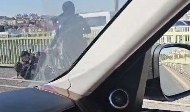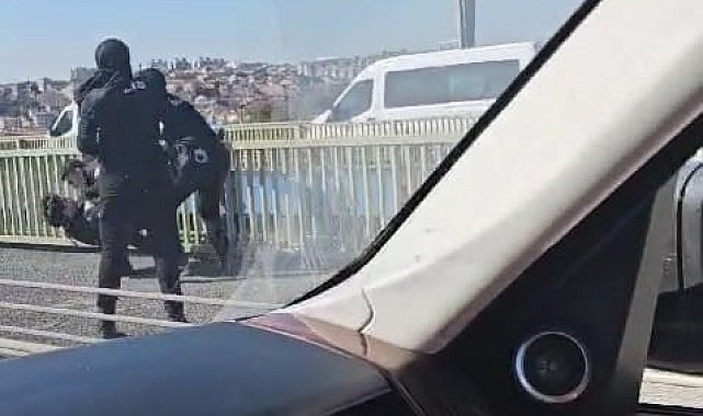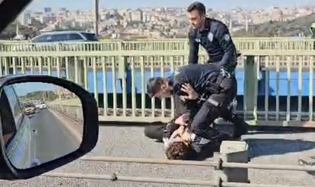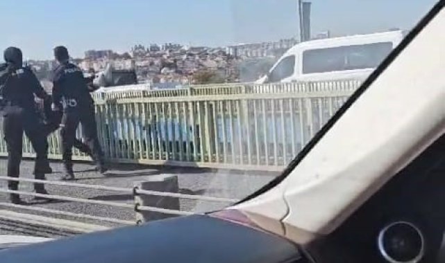 Haliç Köprüsü'nde bir kişinin intihar edeceği yönündeki bilgi polis ekiplerini harekete geçirdi. İntihar edeceğini söyleyen ve köprü korkuluklarından sarkan kişinin dalgınlığından faydalanan polis, şahsı korkuluklardan indirdi. O anlar ise bir vatandaş tarafından cep telefonu kamerasıyla kaydedildi.