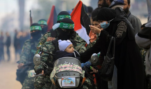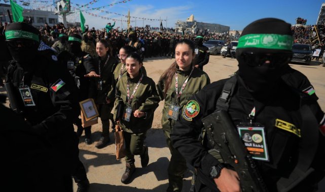 Hamas'ın askeri kanadı İzzeddin El Kassam Tugayları, 4 İsrailli kadın esiri Kızılhaç'a teslim etti. İsrail'in ise 200 Filistinli mahkumu serbest bırakması bekleniyor.Gazze Şeridi'nde 19 Ocak'ta başlayan ateşkes anlaşmasının ilk aşaması kapsamında ikinci takas süreci gerçekleştiriliyor. Hamas'ın askeri kanadı İzzeddin El Kassam Tugayları, Gazze şehrinin kalbindeki Filistin Meydanı'nda 4 İsrailli kadın askeri, Kızılhaç yetkililerine teslim etti. Meydanda kurulan sahnede bir El Kassam Tugayları mensubu ile bir Kızılhaç yetkilisi belge imzaladı. Serbest kalan askeri üniformalı Liri Albag, Karina Ariev, Danielle Gilboa ve Naama Levy'e "hediye çantaları" verildi. Esirler, Kızılhaç aracına bindirilerek İsrail'e doğru hareket etti. Esirlerin önce İsrail-Gazze sınırına yakın bir askeri tesise götürülmesi ve buradaki ilk sağlık kontrollerinin ardından hastaneye sevk edilmeleri, daha sonra aileleriyle bir araya gelmeleri planlanıyor.İsrail'in ise 200 Filistinliyi serbest bırakarak Kızılhaç ekiplerine teslim etmesi bekleniyor.Ateşkesin ilk günü 3 İsrailli ile 90 Filistinli takas edilmiştiÖte yandan ateşkesin yürürlüğe girdiği 19 Ocak'ta İsrail hapishanelerinde tutulan 90 Filistinli karşılığında Gazze'deki 3 İsrailli esir serbest bırakılmıştı.