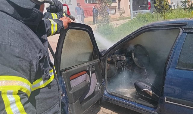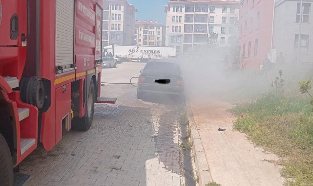 Hatay'da park halindeyken motor kısmı alevlere teslim olan otomobilde çıkan yangın söndürüldü.