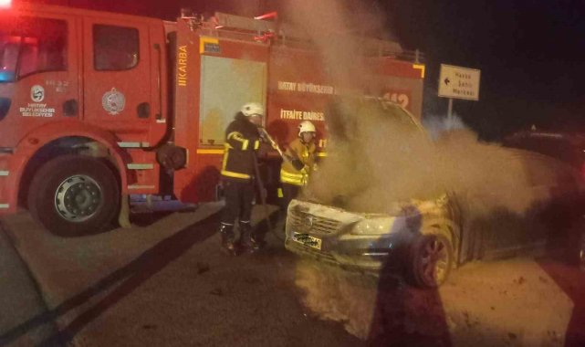 Hatay'da seyir halindeyken alevlere teslim olan otomobilde hasar oluştu.