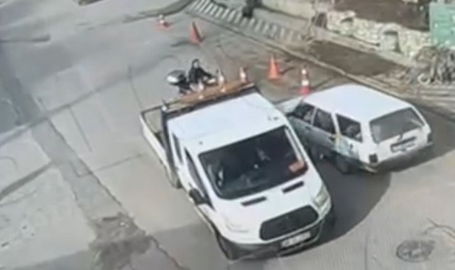 Bolu'nun Mudurnu ilçesinde hatalı sollama yapan motosiklet sürücüsü, otomobilin çarpması sonucu yaralandı. Kaza anı güvenlik kamerasına yansıdı.