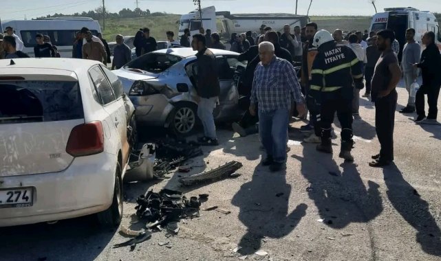 Hatay'ın Altınözü ilçesinde 3 otomobilin karıştığı kazada 7 kişi yaralandı.