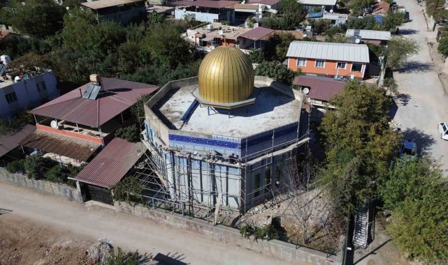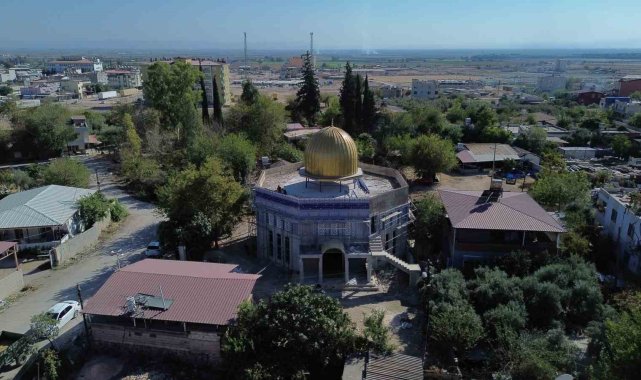 Hatay'da altın sarısı kubbesi ve çinileriyle Kubbetü's-Sahra'yı andıran cami, mest ediyor